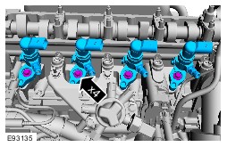 NOTE:Rotate the injector to aid removal. Discard the fuel injector copper heat shield washer. | Item 10 : High-pressure fuel supply lines NOTE:Discard the high-pressure fuel supply lines. Item 11 : Fuel injector clamp retaining bolts NOTE:Discard the fuel injector clamp retaining bolts. Item 13 : Fuel injectors | | -