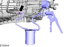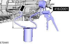 | General Procedures Special Tool(s) | | Vacuum Pump Kit 416-D001 (23-036 A) | Materials Name Specification Super DOT 4 brake fluid ESD-M6C57-A WARNING:Brake fluid contains polyglycol ethers and polyglycols. Avoid contact with the eyes. Wash hands thoroughly after handling. If brake fluid contacts the eyes, flush the eyes for 15 minutes with cold running water. Get medical attention if irritation persists. If taken internally, drink water and induce vomiting. Get medical attention immediately. Failure to follow these instructions may result in personal injury. CAUTION:If brake fluid is spilt on the paintwork, the affected area must be immediately washed down with cold water. NOTE:If proprietary brake bleeding equipment is available, this can be used to bleed the clutch system, following the method below. The maximum pressure must not exceed 1.5 bar. NOTE:The clutch control system is self-venting. The components are arranged in such a way that small amounts of air trapped in the system are removed automatically during clutch operation. All vehicles | | -