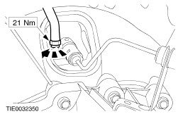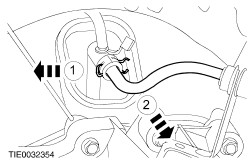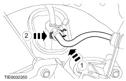 NOTE:Make sure that the spring clip is correctly seated. Close the clutch slave cylinder bleed nipple. - Push the clutch pressure supply line backwards.