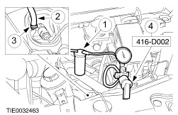 | General Procedures Special Tool(s) | | Vacuum Pump Kit 416-D001 (23-036 A) | General Equipment Materials Name Specification Super DOT 4 brake fluid ESD-M6C57-A All vehicles CAUTION:If brake fluid is spilt on the paintwork, the affected area must be immediately washed down with cold water. | | -
