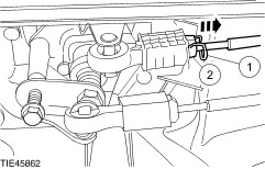 Raise and support the vehicle. For additional information, refer to: Jacking (100-02 Jacking and Lifting, Description and Operation) / Lifting (100-02 Jacking and Lifting, Description and Operation). | | | -