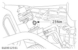 WARNING:Install a new steering column flexible coupling nut. Failure to follow this instruction may result in personal injury. NOTE:Make sure the road wheels are in the straight ahead position. Connect the steering column flexible coupling to the steering gear pinion. | | | -
