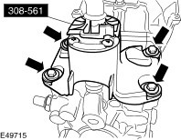 NOTE:Make sure, that the transmission is shifted into third gear. Loosen the gearshift assembly retaining bolts by three turns and install the special tool. | | | -