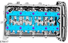 CAUTION:Remove the camshaft carrier bolts in the sequence shown. Remove the camshaft carrier. | Installation WARNING:Do not smoke or carry lighted tobacco or open flame of any type when working on or near any fuel related components. Highly flammable mixtures are always present and may ignite. Failure to follow these instructions may result in personal injury. | | -