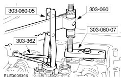 | In-vehicle Repair Special Tool(s) | | Compressor, Valve Spring 303-060 (21-024) | | | Adapter for 303-060 303-060-05 (21-024-05) | | | Adapter for 303-060 303-060-07 (21-024-07) | | | Installer, Valve Stem Collets 303-362 (21-156) | Removal | | -