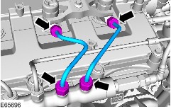 CAUTION:Make sure that the fuel line remains in contact at both ends until both unions nuts have been unscrewed and the area around the joints thoroughly cleaned. CAUTION:Make sure that all openings are sealed. Use new blanking caps. Vacuum foreign material from the high-pressure fuel supply line, the fuel injector and the fuel rail. Refer to: Fuel Injection Component Cleaning (303-04C Fuel Charging and Controls - 2.2L Duratorq-TDCi (Puma) Diesel, General Procedures). | | | -