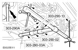 | Removal Special Tool(s) | | Support Bar, Engine 303-290A (21-140) | | | Adapter for 303-290A 303-290-02 (21-140-02) | | | Adapter for 303-290A 303-290-03 (21-140-03) | | | Adapter for 303-290A 303-290-13 (21-140-09) | | | Remover, Halfshaft 308-192 (16-057) | General Equipment Two leg puller Transmission jack | | -