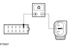 | | U0049 | RAM Error | | INSTALL a new parking aid module. REFER to: Parking Aid Module (413-13 Parking Aid, Removal and Installation). TEST the system for normal operation. | Symptom Chart | Symptom | Possible Sources | Action | | The parking aid is inoperative/does not operate correctly | * Fuse. * Circuit(s). * Parking aid module. | * | | No communication with the parking aid module | * DLC. * Circuit(s). * Parking aid module. | * | Pinpoint Tests NOTE:Use a digital multimeter for all electrical measurements. | PINPOINT TEST A : THE PARKING AID IS INOPERATIVE/DOES NOT OPERATE CORRECTLY | | TEST CONDITIONS | DETAILS/RESULTS/ACTIONS | | A1: CHECK THE PARKING AID MODULE FOR POWER | | | 1 Disconnect Parking aid module CMP01A. | | | 2 Measure the voltage between the parking aid module CMP01A pin 1, circuit SBP63C (WH/RD), harness side and ground. | | | Is the voltage greater than 10 volts? Yes No REPAIR circuit SBP63C (WH/RD). TEST the system for normal operation. | | A2: CHECK THE PARKING AID MODULE FOR GROUND | | | 1 Measure the resistance between the parking aid module CMP01A pin 8, circuit GD116F (BK/VT), harness side and ground. | | | Is the resistance less than 1 Ohm? Yes No REPAIR circuit GD116F (BK/VT). TEST the system for normal operation. | | A3: CHECK THE REVERSE LAMP FOR CORRECT OPERATION | | | 1 Select REVERSE. | | | 2 Check the reversing lamps for correct operation. | | | Do the reversing lamps illuminate? Yes No REFER to: Reversing Lamps (417-01 Exterior Lighting, Diagnosis and Testing). TEST the system for normal operation. | | A4: CHECK THE PARKING AID SPEAKER FOR CORRECT OPERATION | | | 1 Remove the parking aid speaker. | | | 2 Measure the resistance between the parking aid speaker CMP09 pin 1, and pin 2, component side. | | | Is the resistance 50 Ohms +/- 7.5 Ohms? Yes No INSTALL a new parking aid speaker. TEST the system for normal operation. | | A5: CHECK THE CIRCUIT CMP09A (BN/BU) FOR OPEN | | | 1 Disconnect Parking Aid Speaker CMP09. | | | 2 Measure the resistance between the parking aid module CMP01A pin 10, circuit CMP09A (BN/BU), harness side and the parking aid speaker CMP09 pin 1, circuit CMP09A (BN/BU), harness side. | | | Is the resistance less than 1 Ohm? Yes No REPAIR the circuit. TEST the system for normal operation. | | A6: CHECK THE CIRCUIT RMP09A (BU/GN) FOR OPEN | | | 1 Measure the resistance between the parking aid module CMP01A pin 2, circuit RMP09A (BU/GN), harness side and the parking aid speaker CMP09 pin 2, circuit RMP09A (BU/GN), harness side. | | | Is the resistance less than 1 Ohm? Yes INSTALL a new parking aid module. REFER to: Parking Aid Module (413-13 Parking Aid, Removal and Installation). TEST the system for normal operation. No REPAIR the circuit. TEST the system for normal operation. | | PINPOINT TEST B : NO COMMUNICATION WITH THE PARKING AID MODULE | | TEST CONDITIONS | DETAILS/RESULTS/ACTIONS | | B1: CHECK THAT WDS IS COMMUNICATING THROUGH THE DLC | | | 1 Select an alternative system to check the DLC. | | | Is WDS able to communicate with the selected alternative system? Yes No CHECK the DLC. For additional information, refer to the Wiring Diagrams. | | B2: CHECK CIRCUIT VDB07 (VT/OG) FOR OPEN CIRCUIT | | | 1 Disconnect Parking Aid Module CMP01A. | | | 2 Measure the resistance between the DLC pin 11 and the parking aid module CMP01A pin 7, circuit VDB07 (VT/OG), harness side. | | | Is the resistance less the 1 Ohm? Yes No REPAIR the circuit. TEST the system for normal operation. | | B3: CHECK CIRCUIT VDB06 (GY/OG) FOR OPEN CIRCUIT | | | 1 Measure the resistance between the DLC pin 3 and the parking aid module CMP01A pin 14, circuit VDB07 (GY/OG), harness side. | | | Is the resistance less the 1 Ohm? Yes INSTALL a new parking aid module. REFER to: Parking Aid Module (413-13 Parking Aid, Removal and Installation). TEST the system for normal operation. No REPAIR the circuit. TEST the system for normal operation. | | PINPOINT TEST C : DTC B4401 : OUTER RIGHT PARKING AID SENSOR SIGNAL CIRCUIT OPEN OR SHORT TO GROUND. DTC B4412 : OUTER RIGHT SENSOR SIGNAL CIRCUIT SHORT TO POWER. B5811 : PARKING AID SENSOR POWER SUPPLY SHORT TO GROUND. | | TEST CONDITIONS | DETAILS/RESULTS/ACTIONS | | C1: CHECK THE OUTER RIGHT PARKING AID SENSOR FOR POWER | | | 1 Disconnect Outer Right Parking Aid Sensor CMP17. | | | 2 Measure the voltage between the outer right parking aid sensor CMP17 pin 1, circuit LMP07 (BU/WH), harness side and ground. | | | Is the voltage greater than 10 volts? Yes No REPAIR circuit LMP07 (BU/WH). TEST the system for normal operation. | | C2: CHECK THE CIRCUIT LMP07 (BU/WH) FOR SHORT TO GROUND | | | 1 Disconnect Parking Aid Module CMP01B. | | | 2 Measure the resistance between the parking aid module CMP01B pin 11, circuit LMP07 (BU/WH), harness side and ground. | | | Is the resistance greater than 10,000 Ohms? Yes No REPAIR the circuit. TEST the system for normal operation. | | C3: CHECK THE OUTER RIGHT PARKING AID SENSOR FOR GROUND | | | 1 Measure the resistance between the outer right parking aid sensor CMP17 pin 3, circuit RMP07 (GN/WH), harness side and ground. | | | Is the resistance less than 1 Ohm? Yes No REPAIR circuit RMP07 (GN/WH). TEST the system for normal operation. | | C4: CHECK CIRCUIT VMP17 (YE/OG) FOR OPEN | | | 1 Disconnect Parking Aid Module CMP01B. | | | 2 Measure the resistance between the parking aid module CMP01B pin 4, circuit VMP17 (YE/OG), harness side and the outer right parking aid sensor CMP17 pin 2, circuit circuit VMP17 (YE/OG), harness side. | | | Is the resistance less than 1 Ohm? Yes No REPAIR the circuit. TEST the system for normal operation. | | C5: CHECK THE OUTER RIGHT PARKING AID SENSOR FOR SHORT TO POWER | | | 1 Measure the voltage between the outer right parking aid sensor CMP17 pin 1, circuit LMP07 (BU/WH), harness side and ground. | | | Is the voltage less than 1 volt? Yes No REPAIR circuit LMP07 (WH/BU). TEST the system for normal operation. | | C6: CHECK CIRCUIT VMP17 (YE/OG) FOR SHORT TO G