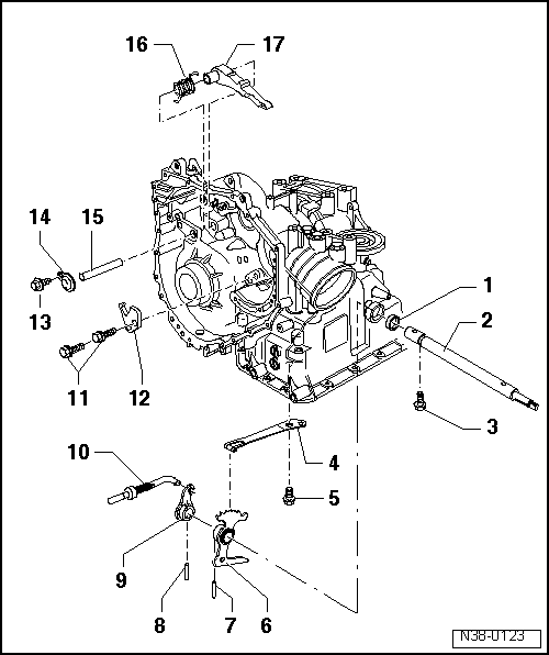 | q | Replace with the meshing lever item → Item before fitting it to the selector rod |