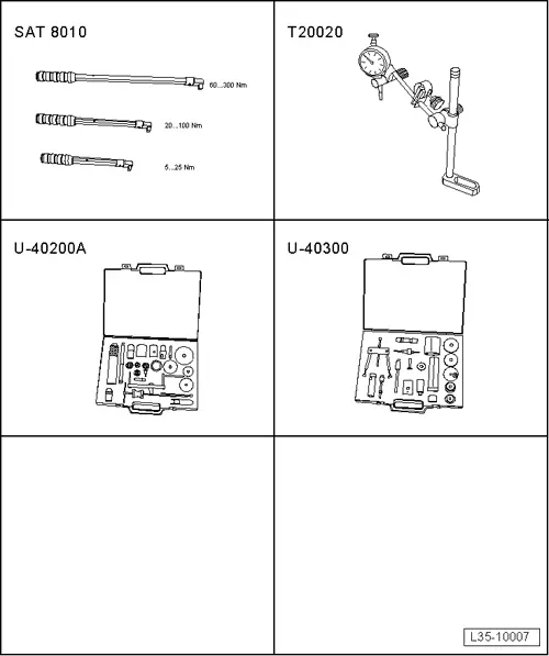 | Remove the outer roller bearing track from the differential, in the gearbox and clutch housing, with adapter -U 40200/10- and adapter -U 40300/14-. |