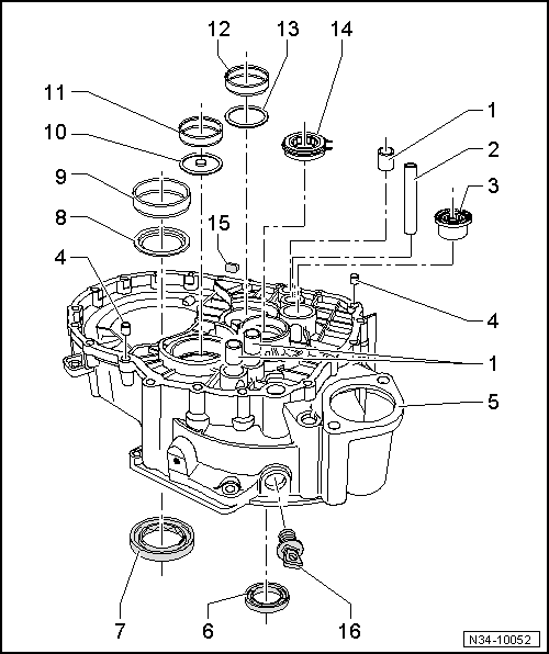 | q | If replaced, the secondary shaft → Chapter → Chapterand differential drive must be adjusted → Chapter |