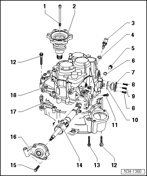 | q | Dismantling and assembling selector mechanism on gearbox side through gearbox date 12 01 3 → Chapter |