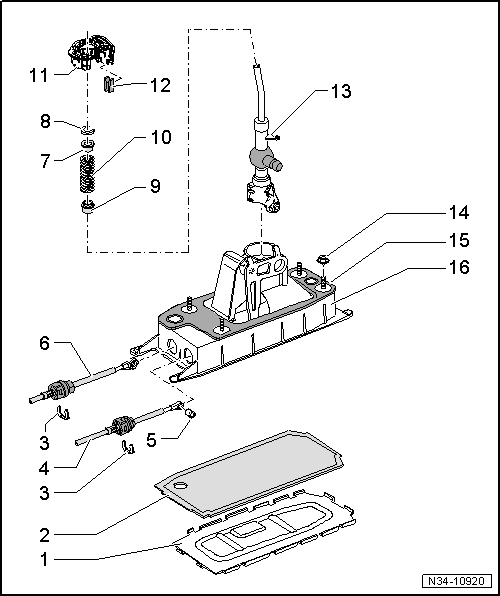 | q | Removing and installing ⇒ Dismantling and assembling selector mechanism → Chapter |