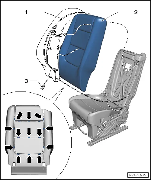 | – | Remove backrest cover together with padding -2- from seat frame. |