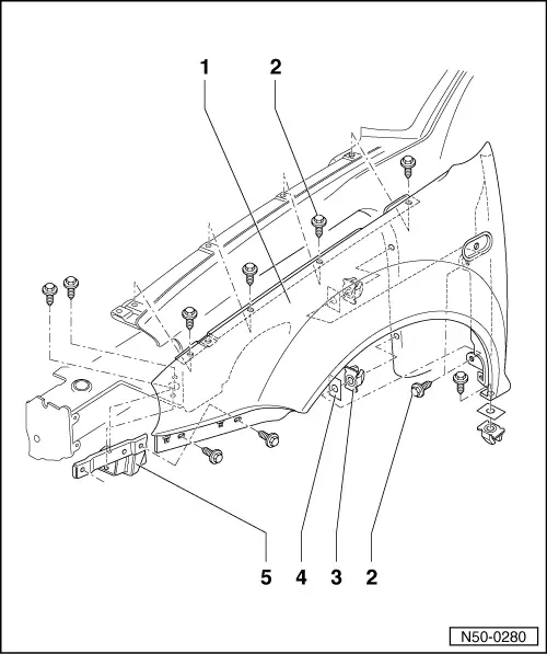– | Removing the wheel housing moulding → Chapter |