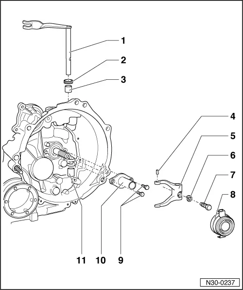 Note!| t | To carry out work on the declutching shaft and the declutching collar, remove the gearbox → Chapter. |