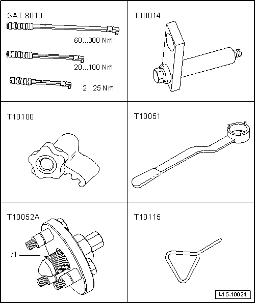 | Consult the equivalence table for tools and equipment according to applicability among Seat / VW / Audi / Skoda → Chapter. |
