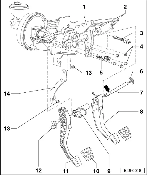| q | Before installing brake light switch, connect brake pedal to brake servo push rod |