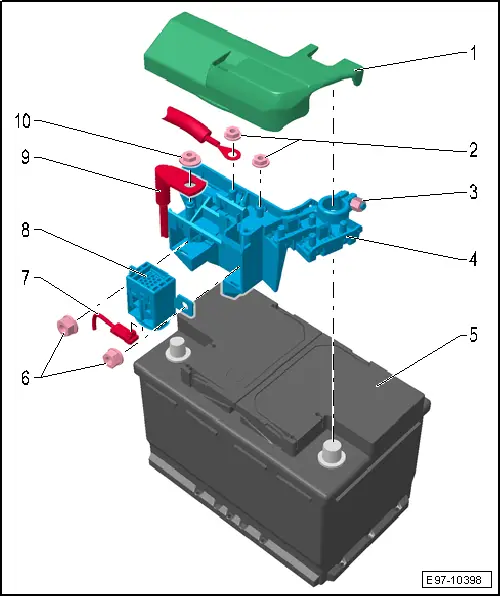 Fuse holder A -SA- on the positive terminal, with battery in the luggage compartment |