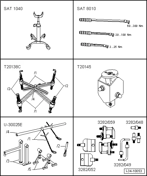 | Consult the equivalence table for tools and equipment according to applicability among Seat / VW / Audi / Skoda → Chapter. |