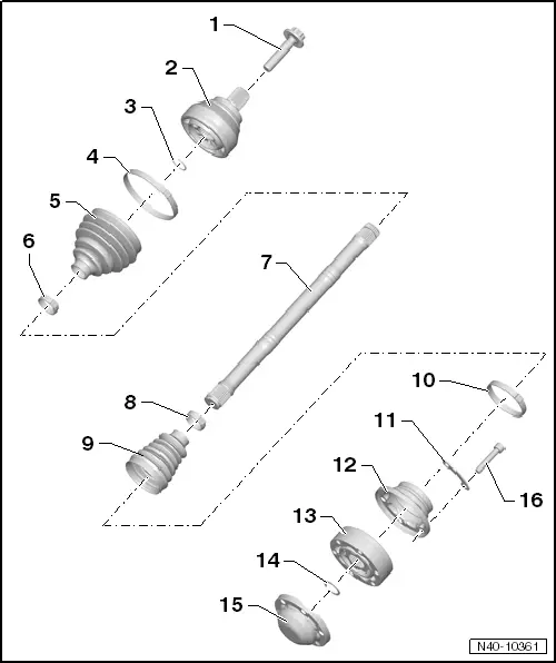 | q | Coat sealing surface of constant velocity joint with -D 454 300 A2- before installing. |