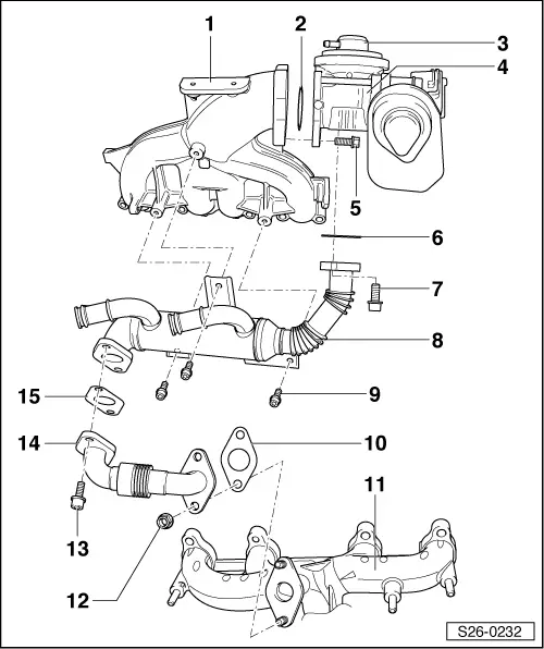 Note| t | The actuation of the exhaust gas recirculation system is performed by the diesel direct injection system control unit -J248- via the EGR valve -N18- to the mechanical exhaust gas recirculation valve. |