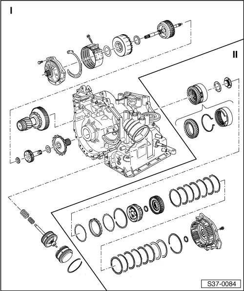 | I - | Removing and installing ATF pump up to large sun gear → Chapter |