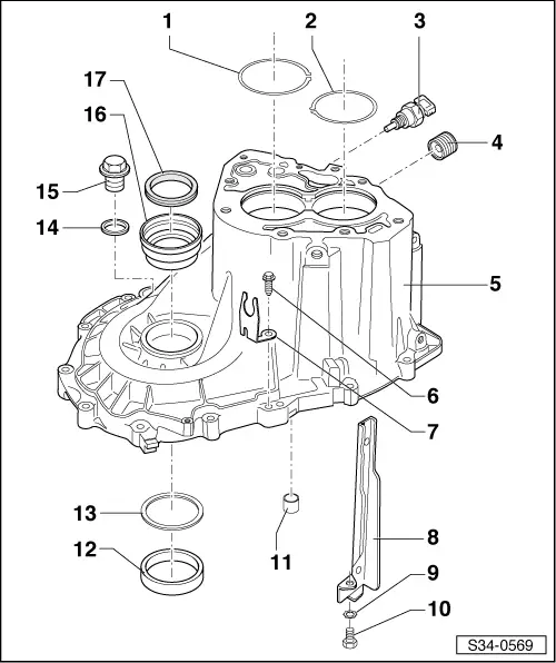 Note| The oil drainage screw is missing in manual gearboxes from 10/01. Oil drainage → Chapter. |