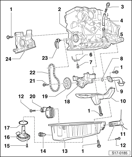 | q | replace the gasket ring for the crankshaft - on the belt pulley side → Chapter |