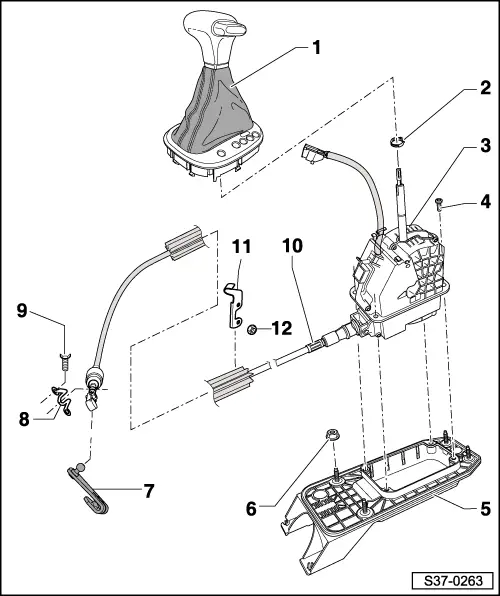 | q | Inspecting and adjusting the selector lever control cable → Chapter |