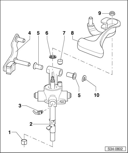 | q | Removing and installing plastic relay lever together with cable lock → Chapter |