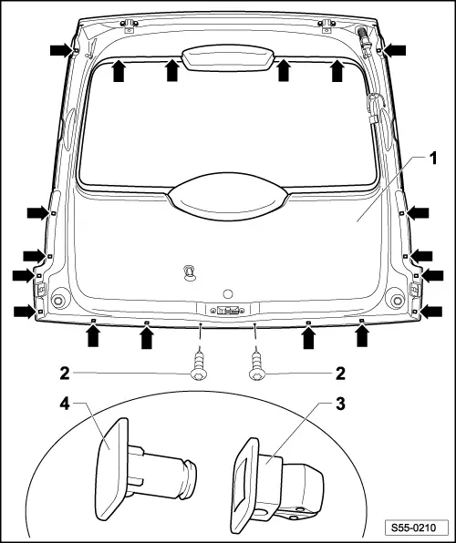 Note| t | The removal of the top trim panel for the tailgate (Pos.4) is carried out on the removed flap. Remove tailgate → Chapter. |