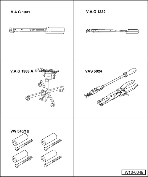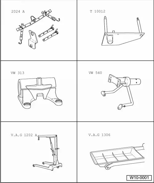 | t | Workshop hoist -V.A.G 1202 A- or workshop hoist -VAS 6100- |