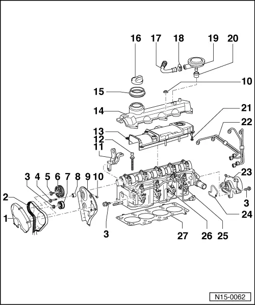 | q | Note sequence when loosening and tightening → Chapter, Removing and installing cylinder head. |