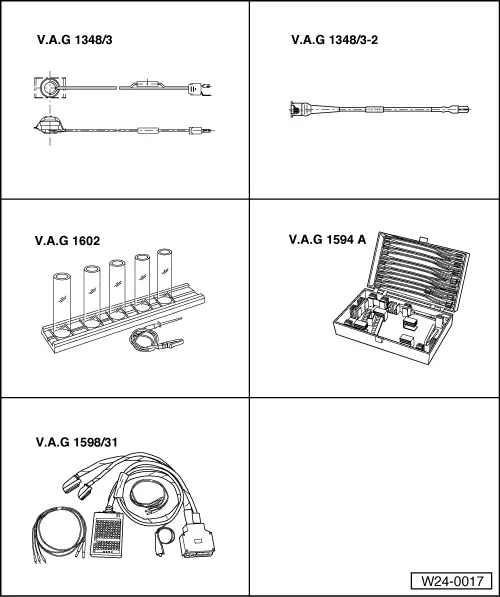 | Connect second injector contact with auxiliary cable to remote control for V.A.G 1348 -V.A.G 1348/3A- using adapter cable -V.A.G 1348/3-2-. |