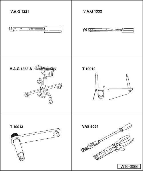 | t | Workshop hoist -V.A.G 1202A- or workshop hoist -VAS 6100- |