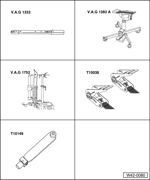 | The spring retainer -V.A.G 1752/15- has been developed especially for 4 Motion vehicles. This enables safe removal and installation of springs. |