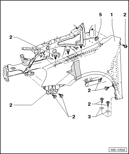 | – | Always insert “zinc intermediate piece AKL 381 035 50” between wing and side member. |