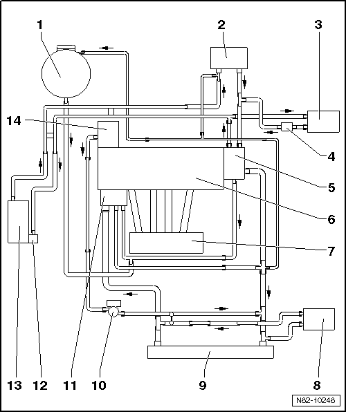 | Connection diagram for coolant hoses in vehicles with auxiliary heating, engine codes AXX, BPY, BWA |