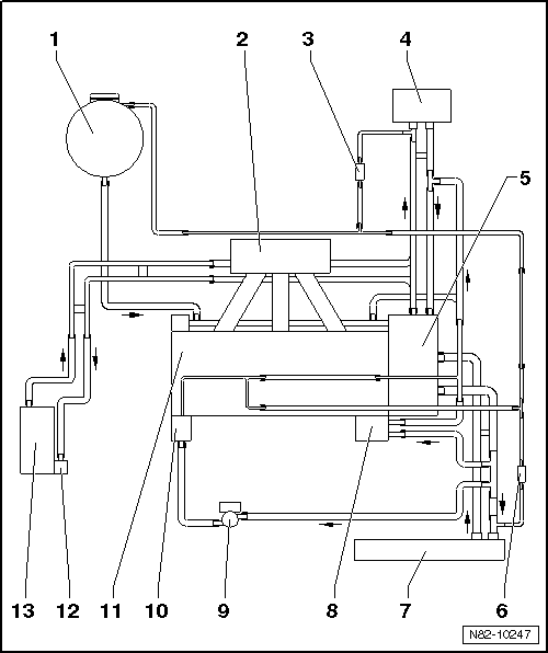 | Connection diagram for coolant hoses in vehicles with auxiliary heating, engine codes BLG, BMY |