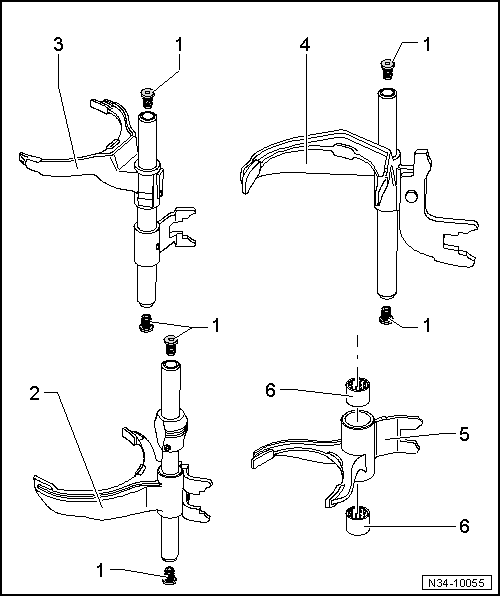 | 15 | Without ball sleeve | On selector rod with selector fork for 5th and 6th gears → Fig. |