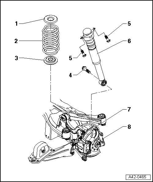 | Assembly overview: shock absorber, coil spring (four-wheel drive, subframe made from aluminium and wheel bearing housing made from cast steel) |