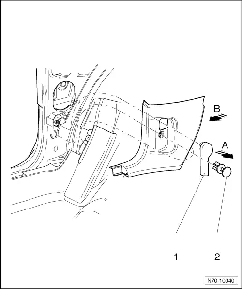 | – | Pull trim out of mountings -arrow B-. |