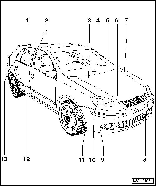 t  The illustration shows the Golf V. The installation positions of the auxiliary heater components on the Golf VI are identical.