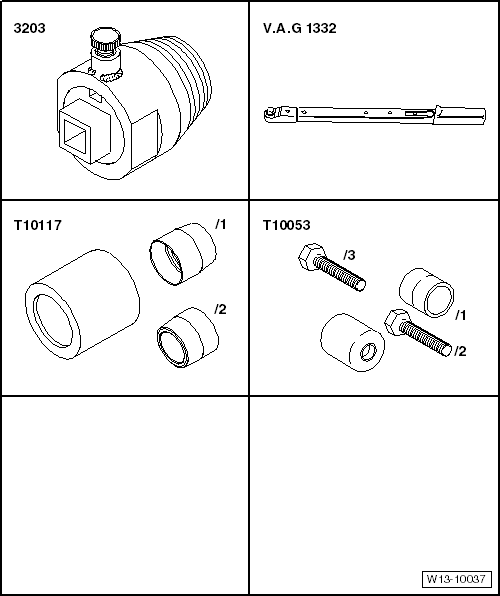 | Screw inner part of oil seal extractor -3203- three turns (approx. 5 mm) out of outer part and lock using knurled screw. |