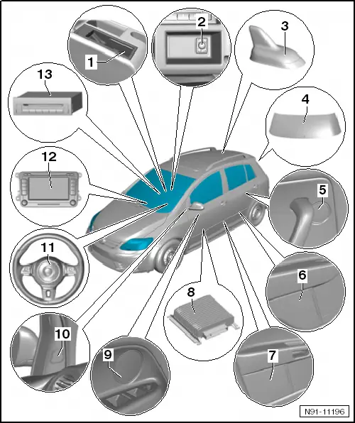 | q | For further information, refer to chapter Multimedia control unit → Chapter. |