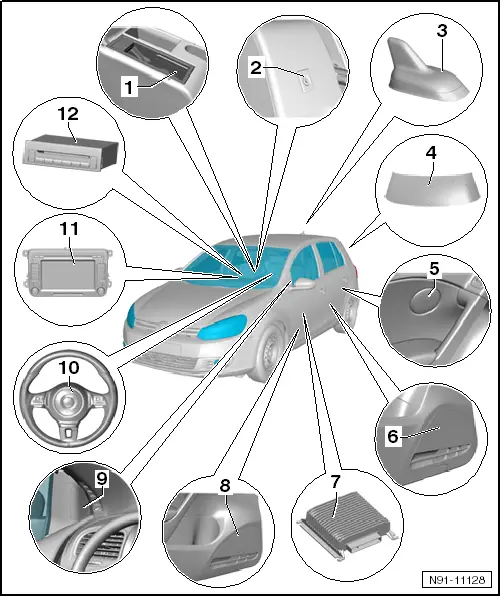 | q | For further information, refer to chapter Multimedia control unit → Chapter. |
