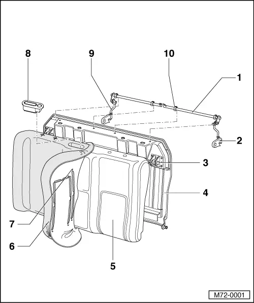 Removing and installing backrest locking device (one-piece backrest) >