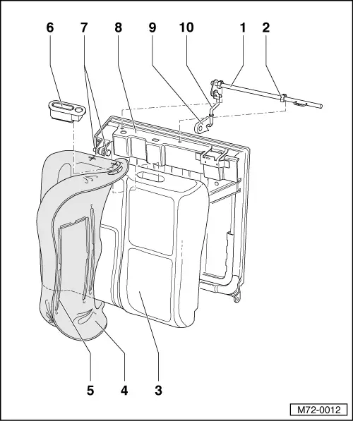 Removing and installing right backrest locking device (two-piece backrest) >