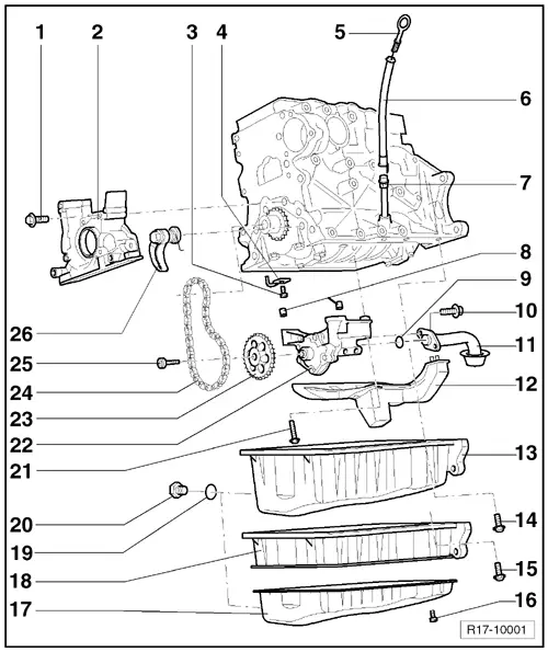 | If during engine repairs considerable amounts of metal filings are found, this may indicate that the crankshaft bearings or the connecting rod shells are damaged. To prevent further damage, proceed as follows: |